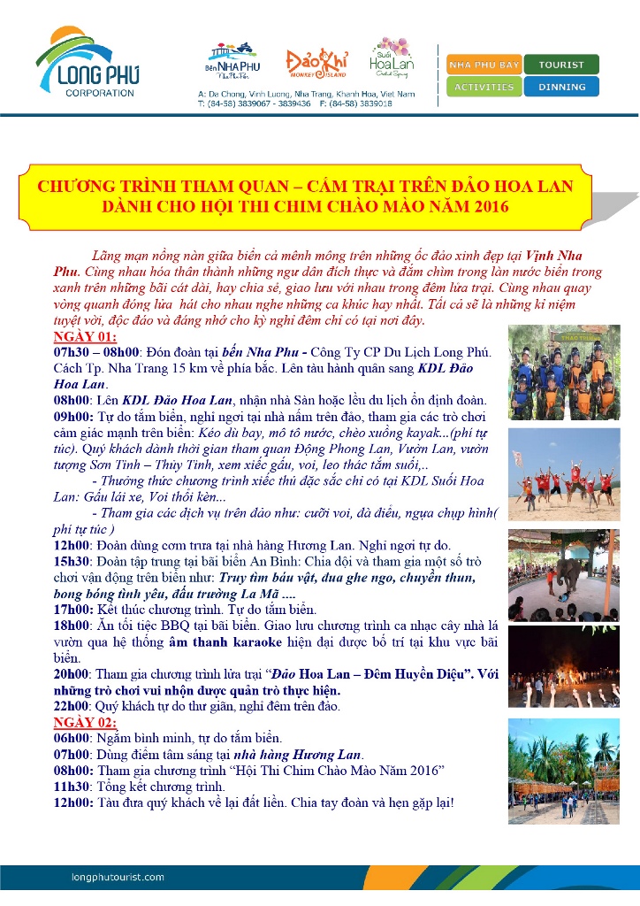 - Địa điểm tổ chức: Khu du lịch Đảo Hoa Lan